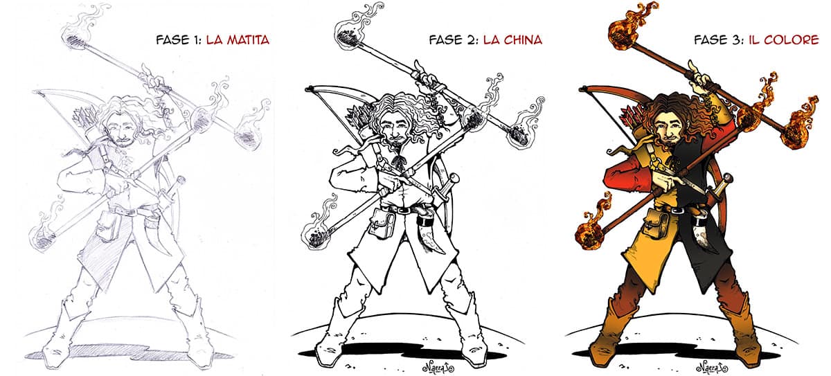 Ritratto a fumetti per Mastro Malderius, giocoliere e rievocatore storico per l’associazione Antica Stirpe