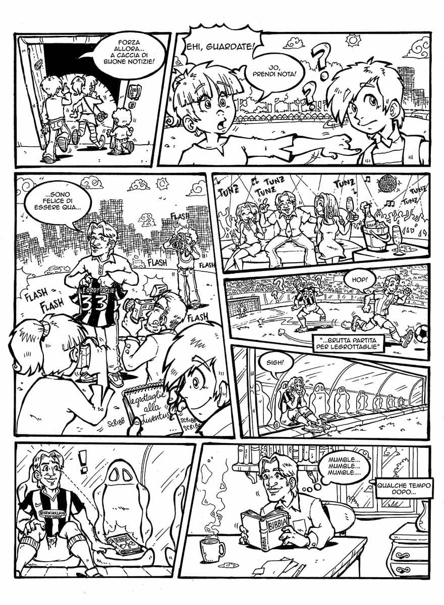 Estratto dal fumetto “Buone Notizie”, la storia delle origini del famoso calciatore Nicola Legrottaglie. Collaborazione con Andrea Mercurio (soggetto, testi e sceneggiatura).